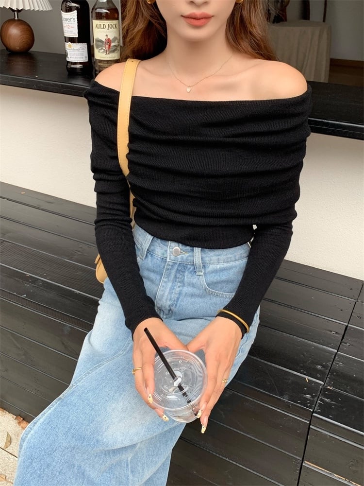 ❤︎オフショルのデザインが肩を美しく見せ、女性らしさを引き立てます。