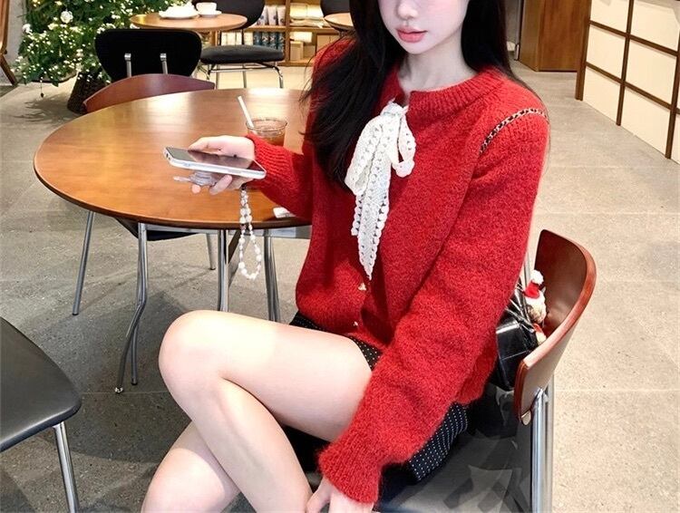 ❤︎即日発送可能商品有り❤︎リボン付き 厚手ニットカーディガン