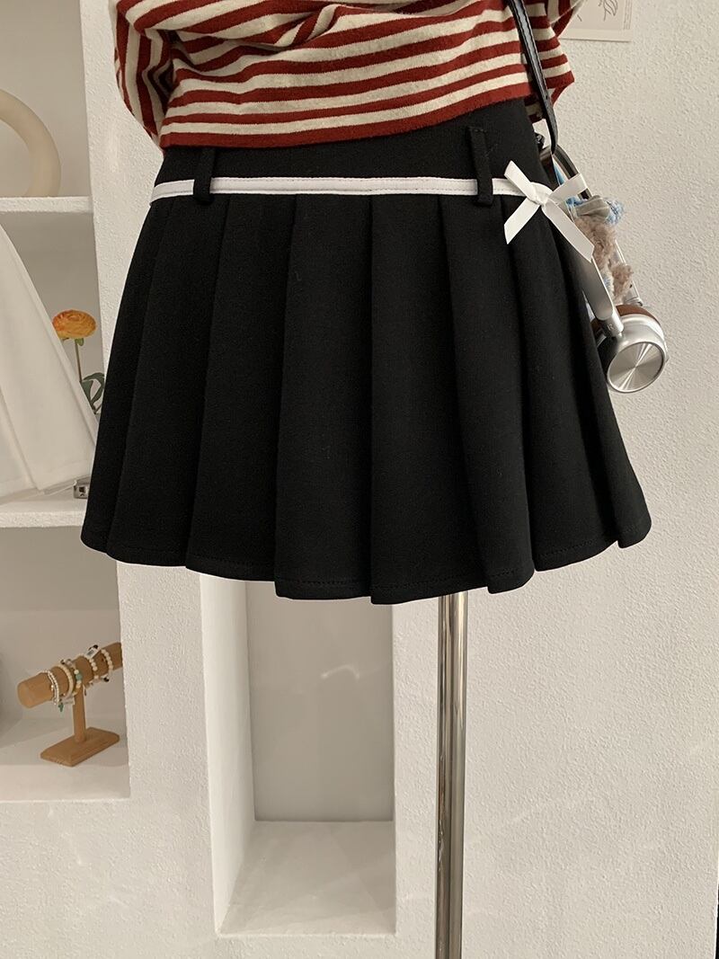 リボンハイウエストプリーツミニスカート