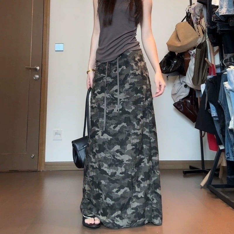 ❤︎この"ハイウエスト 迷彩柄 台形ロングスカート"は、個性的でスタイリッシュな魅力を引き出すアイテムです!