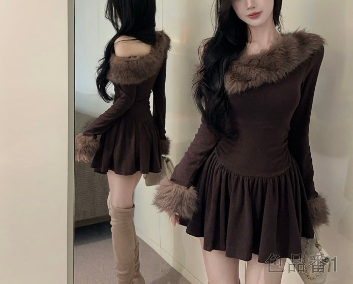 ❤︎この機会に、もこもこ ワンショルダーファー切り替えワンピースの魅力をぜひ体感してください!